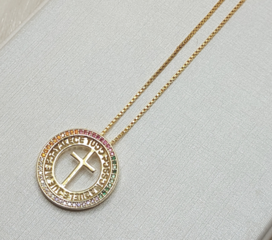 Colar Tudo posso Naquele que me Fortalece Zirconias coloridas