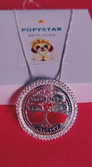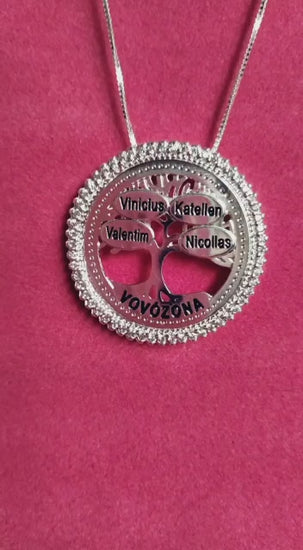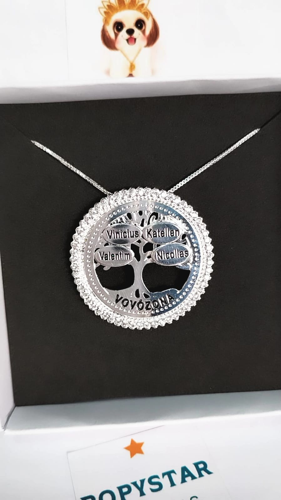 Colar Árvore Letras escuras pedraria em Zircônia.